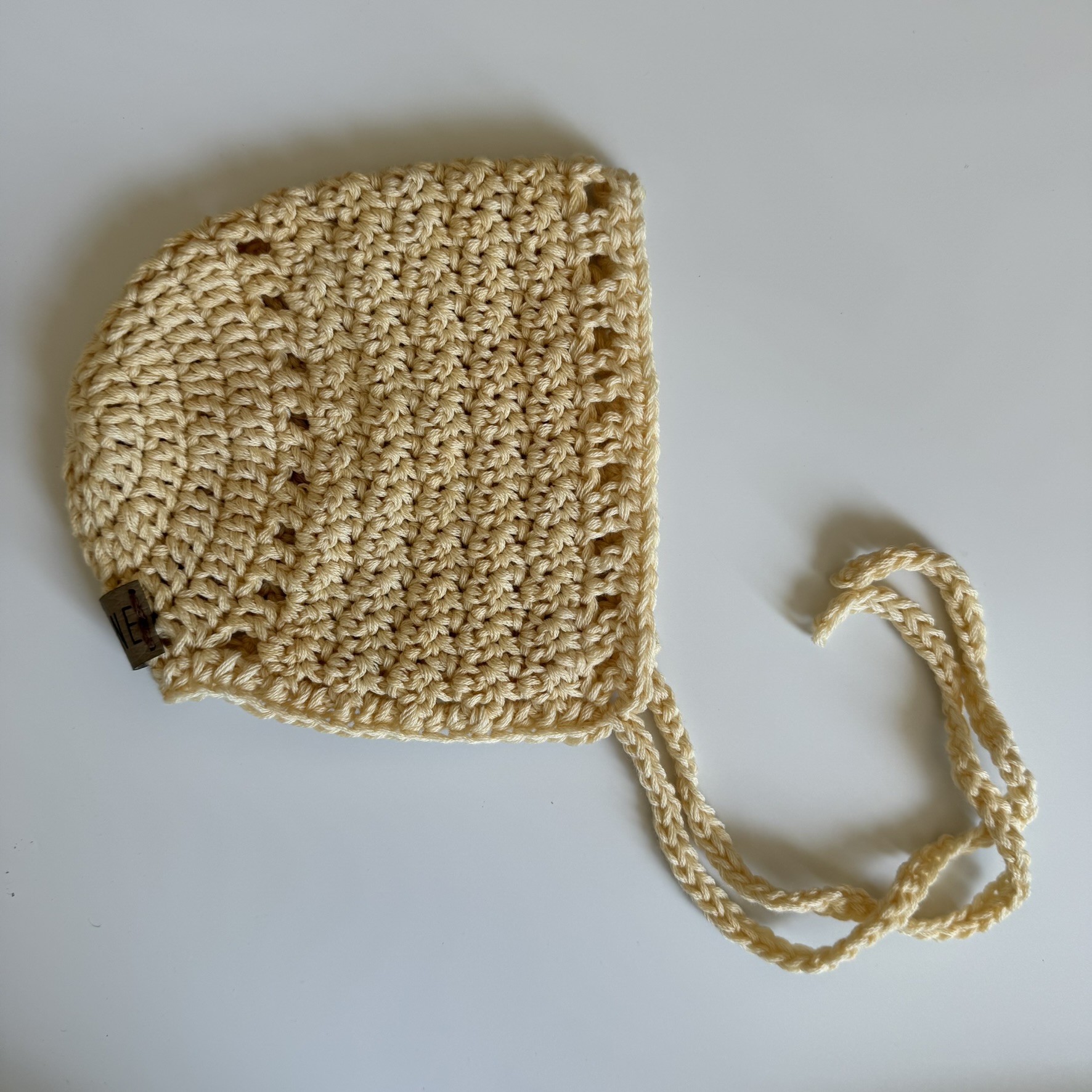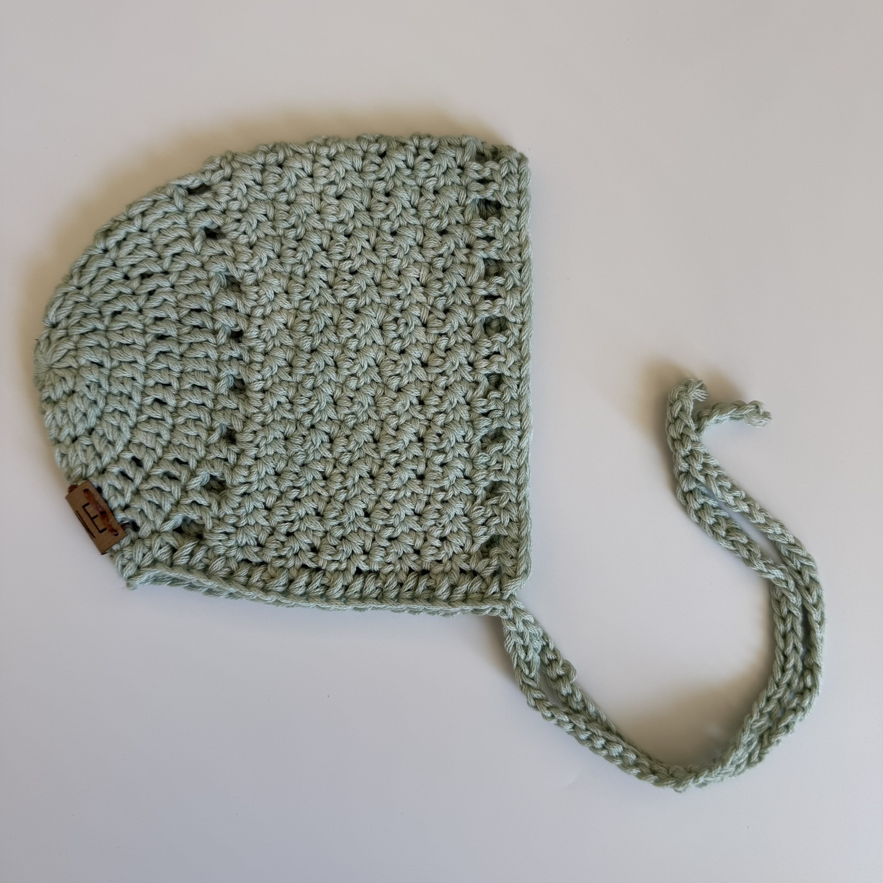 The Jade Bonnet is a modern style bonnet with a textured look and straight edging.