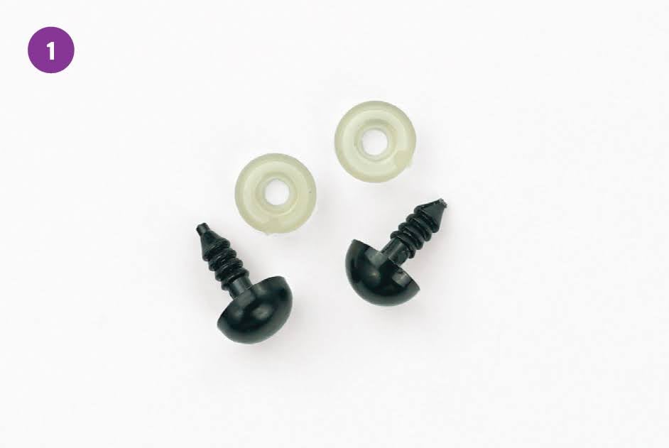Solid black safety eyes with backers. Sold in packs of 5 sets of eyes (10 eyes, 10 backs).